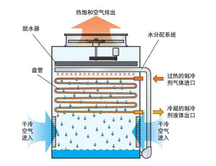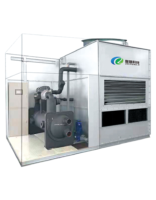 蒸发冷凝式水机组集传统水冷制冷机组、冷却塔、冷却水泵等功能于一体,具有绿色节能,系统集成度高,综合投资低等优点。